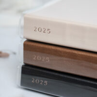 Our vinyl covers are meticulously crafted to perfectly match the dimensions of the 2025 Journey Planner. They provide an impeccable fit, safeguarding the planner from any dents or scratches during year-round use. The design include two pockets in the front flap and a secretarial pocket with an attached small pocket in the back flap.