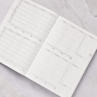 “Less Than Perfect 2 (LTP2)” refers to planners with noticeable imperfections and are offered at a clearance price with further markdowns. Common flaws includes a loose or partially detached page near the front or back due to adhesive issues. They may also have wrinkled or creased pages, dents or markings on the cover, slightly misaligned pages, or irregular margins. While these flaws are visible, the planners remain usable with a little extra care and love.