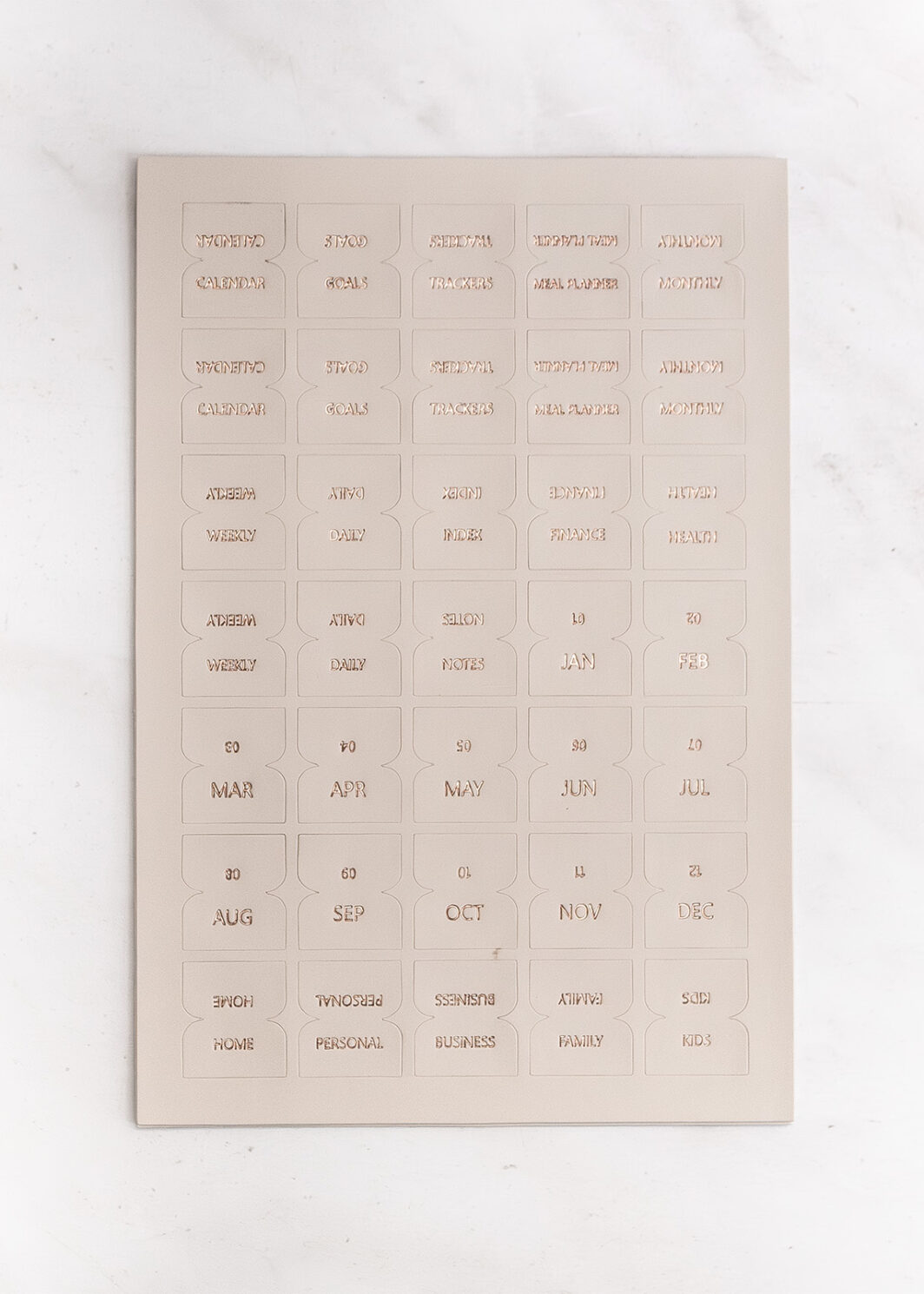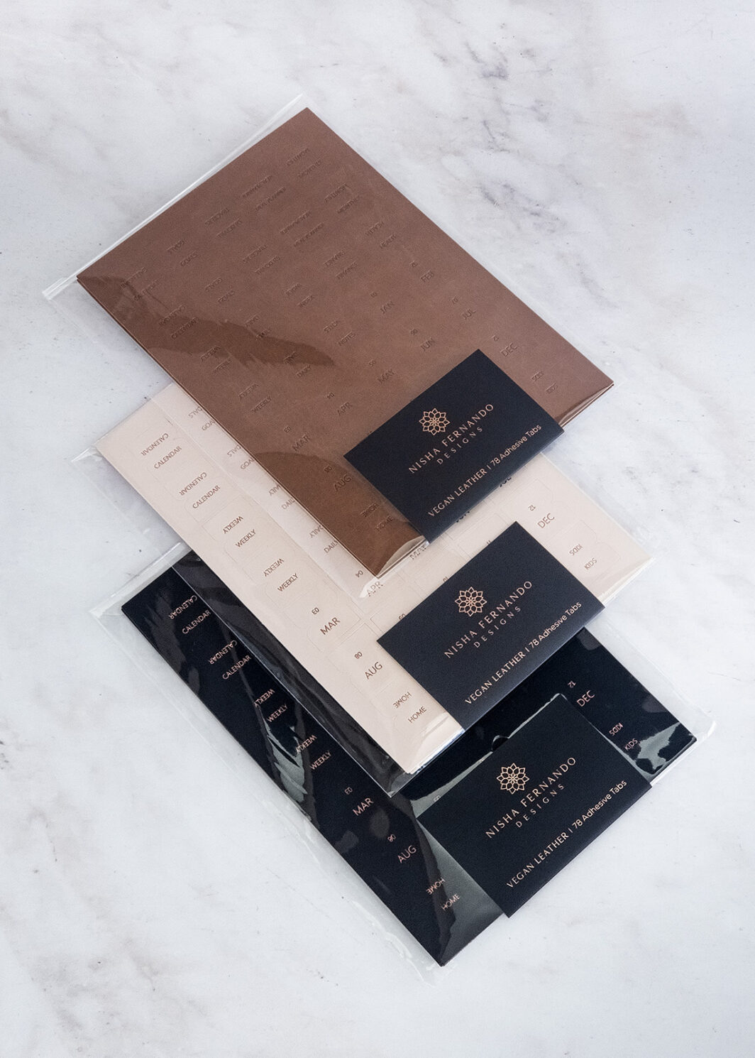 Elevate your organization game with our Vegan Leather Adhesive Tabs. These tabs are designed to help you easily categorize and organize your planners, notebooks, and more. Stylish and functional, they’re the perfect addition for keeping everything in its place!